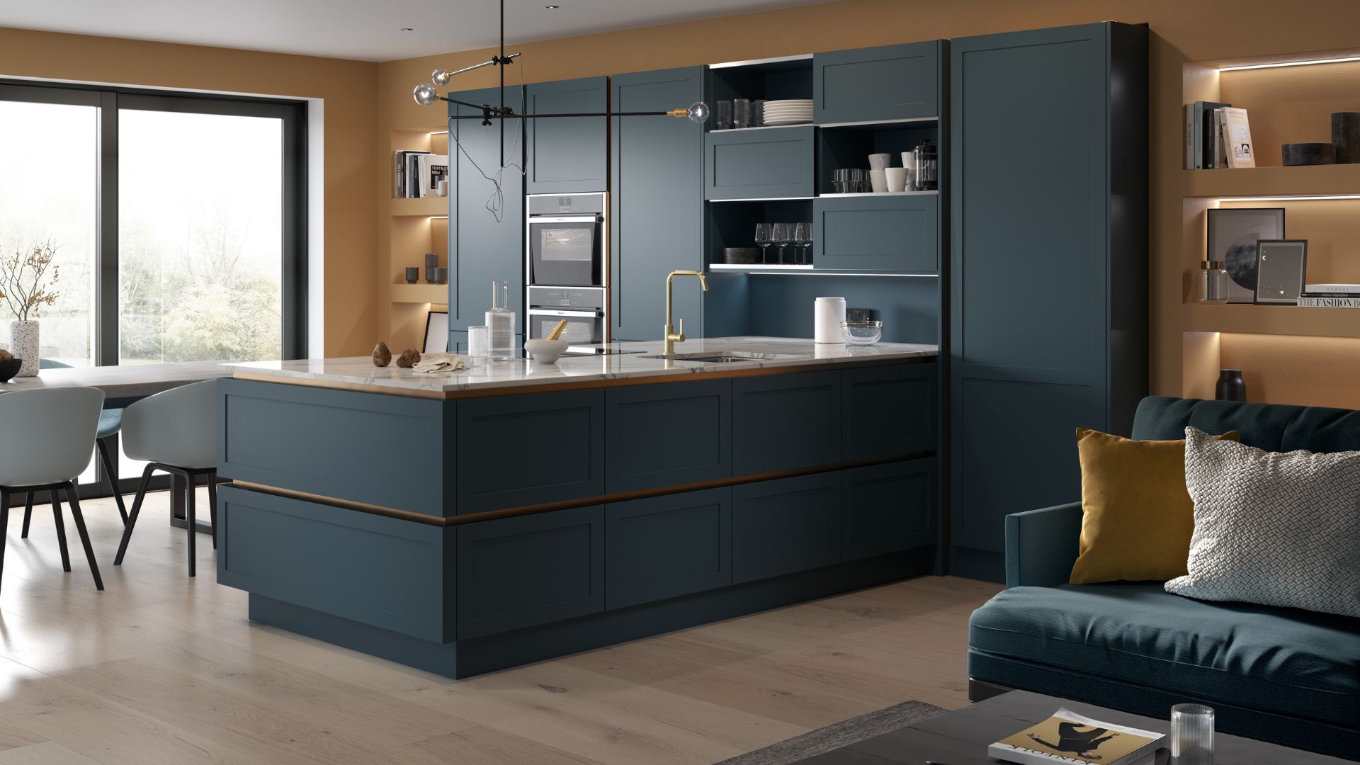 A bold contrast that feels clean and modern. Use black accents like tapware, lighting, or handles to ground yellow’s warmth and add a sharp, sophisticated edge.